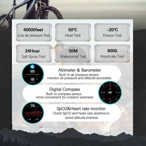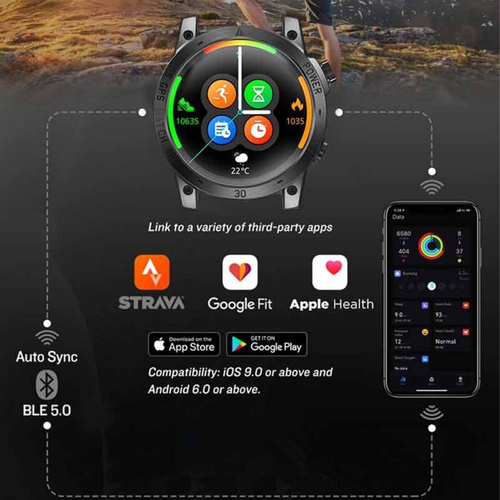ضربان قلب (Heart Rate) / اکسیژن خون (SpO₂) / فشار خون (Blood Pressure) / کیفیت خواب (Sleep Tracking) / ارتفاعسنج (Altimeter) / قطبنما (Compass) / بارومتر (Barometer)